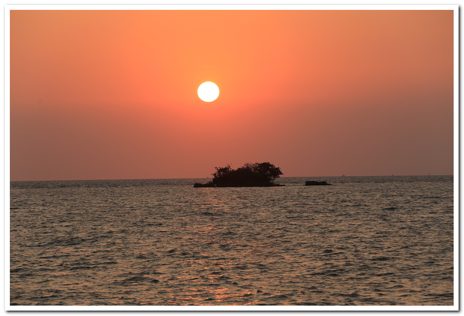 밋밋한 바다의 일몰은 단조롭기에 그 배경이 어떤 장소냐에 따라