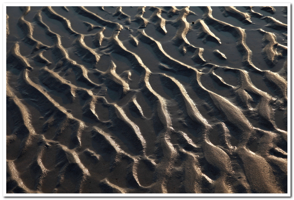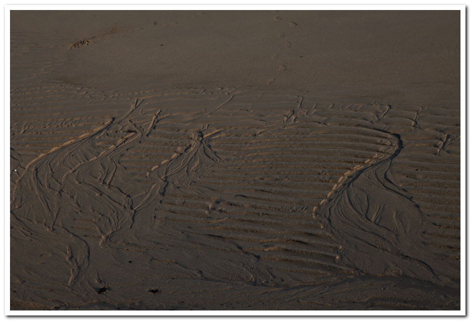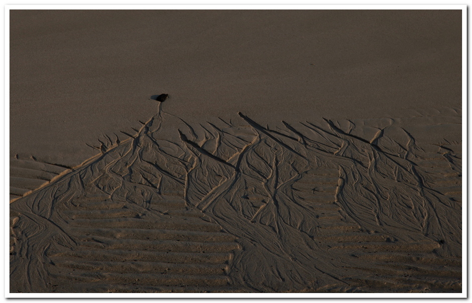 가끔씩 갯벌에 숨어있던 조개들이 나와서 파도가 그린 그림에 덧칠을 하기도 한다.