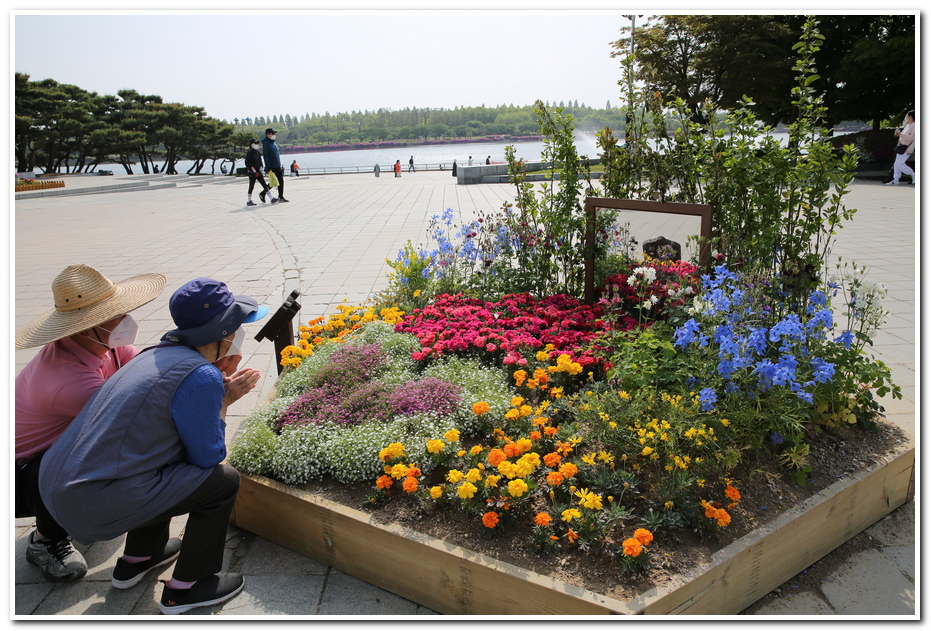 시민들이 직접 소규모의 정원을 만들어호수공원을 찾는 사람들에게