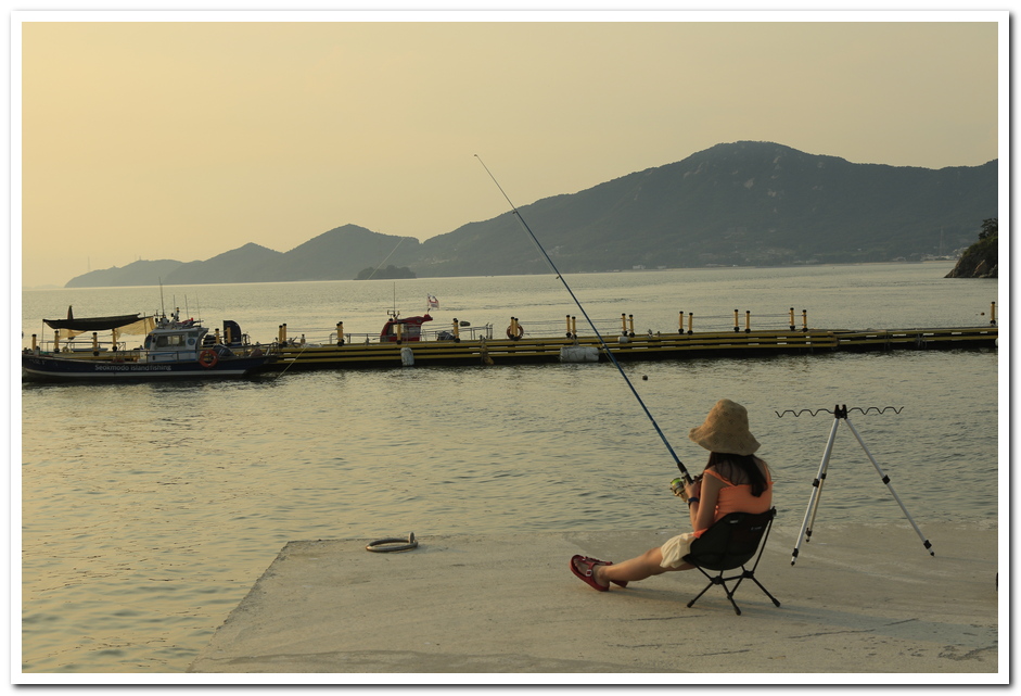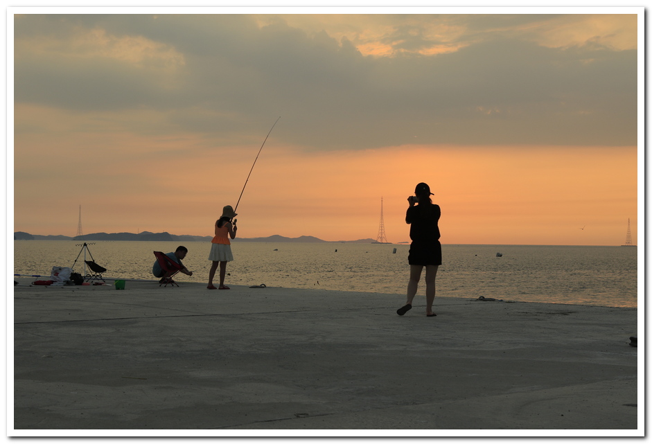 낚싯대를 바다에 넣고 저녁노을을 바라보는 어린 강태공들의 모습이 한가롭다.