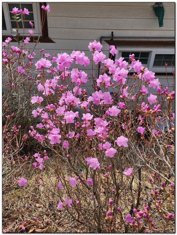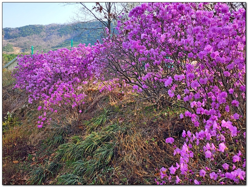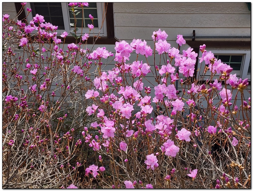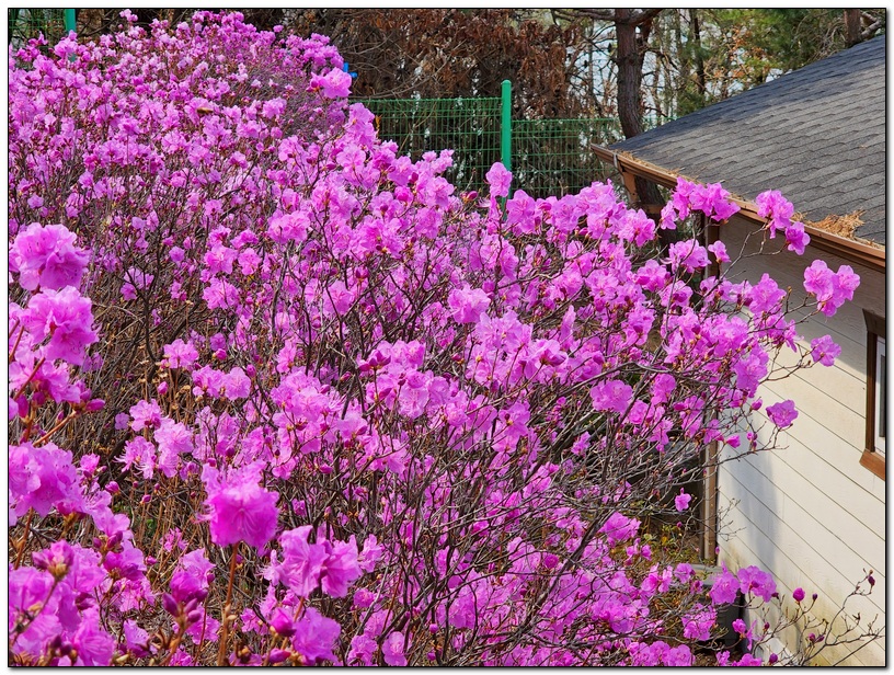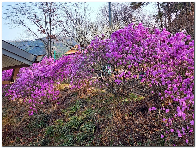 우리 쉼터의 진달래가 만개하였다.