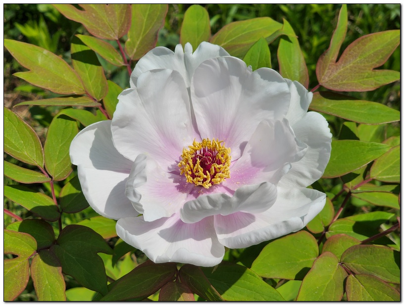 전통정원의 정자와 백모란이 고풍스럽게 다가온다.