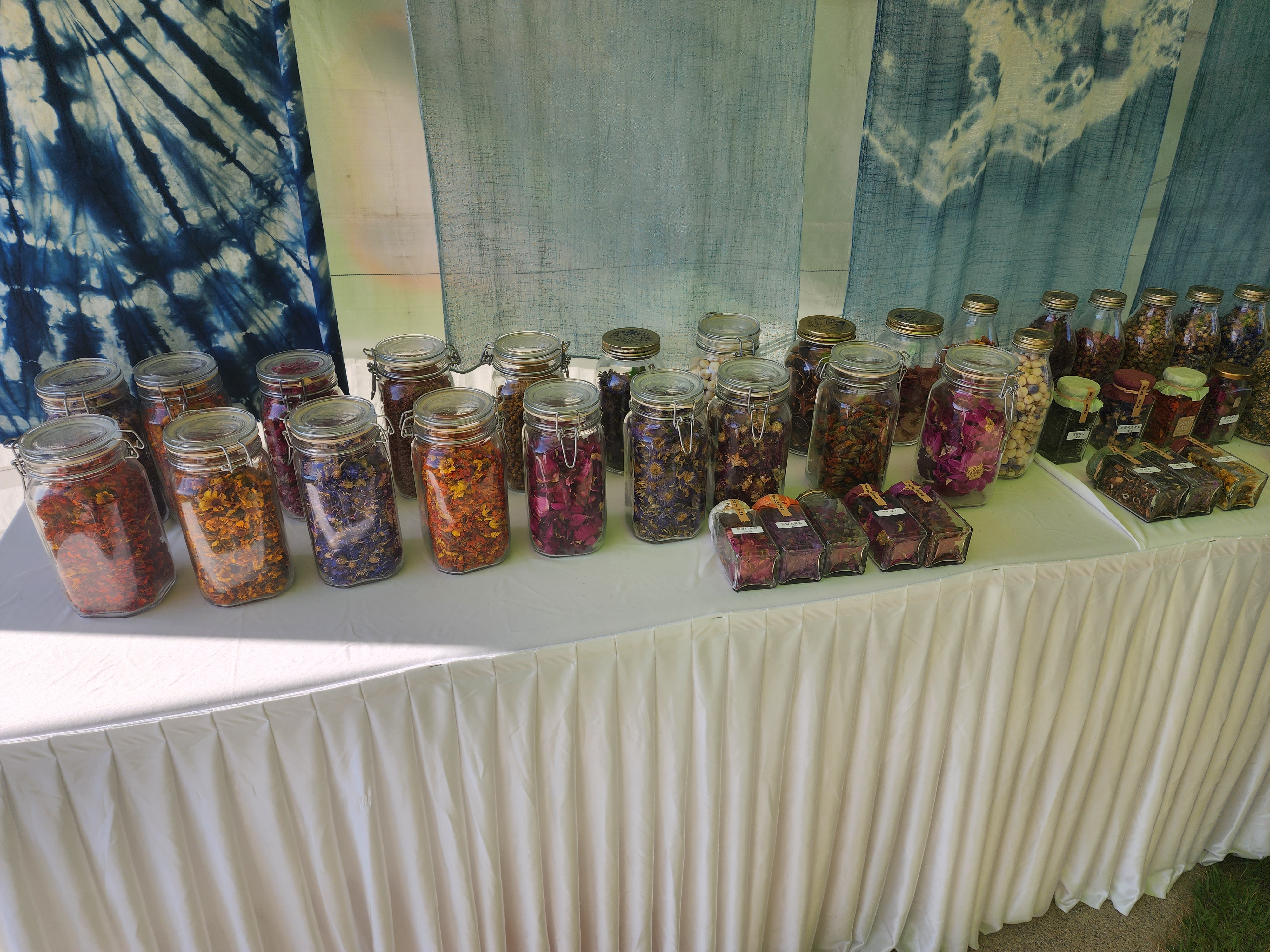 부스에는 꽃차나 옷 감 물들이기등 체험행사도 진행되고 있었고