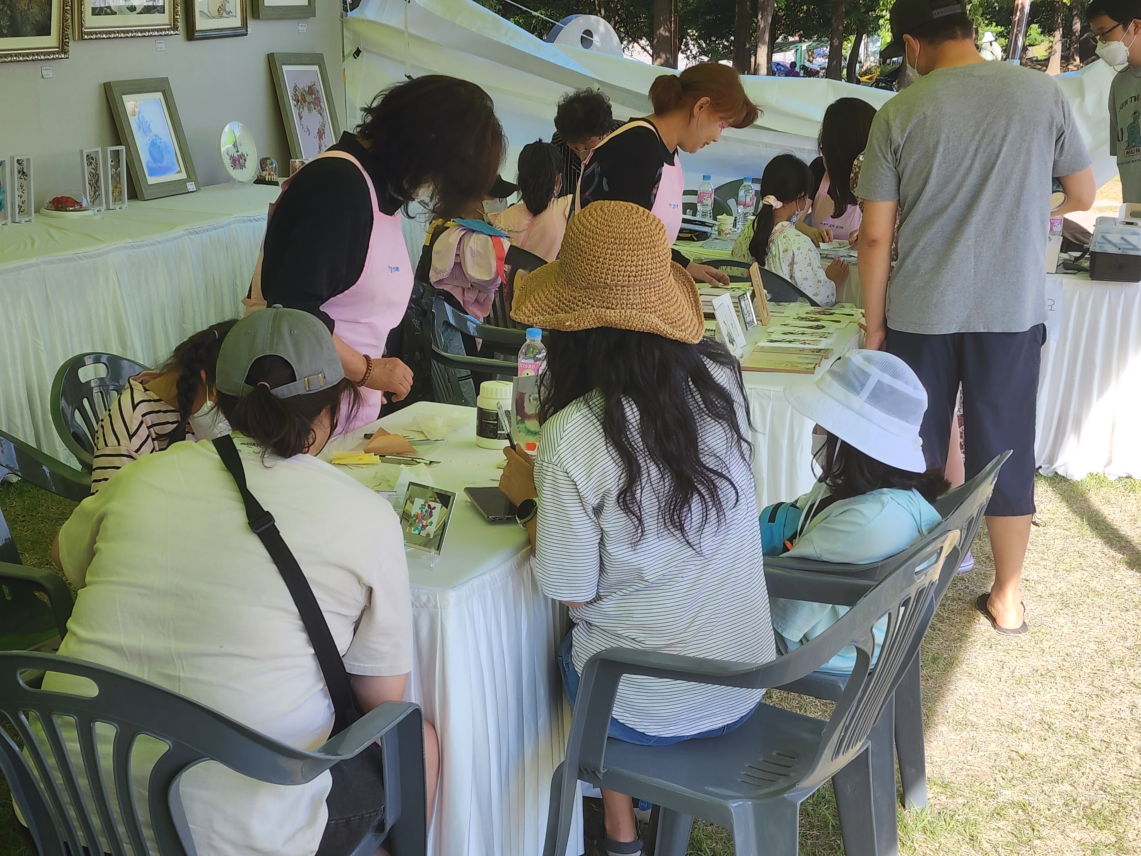 옷 감물 들이기와 꽃차 만드는 부스에도 관심들이 많아 보인다.