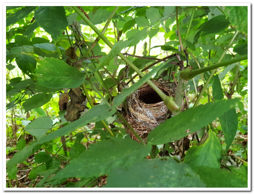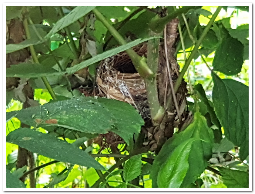 드룹 나무가 너무나 칙칙하여 가지치기를 하던 중 조그만 새 둥지를 발견했다.