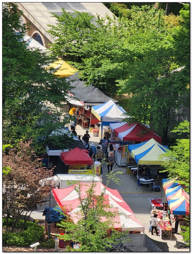밖이 소란하여 내다 봤더니 단지의 중앙 통로에 매대 설치가 한창이다.